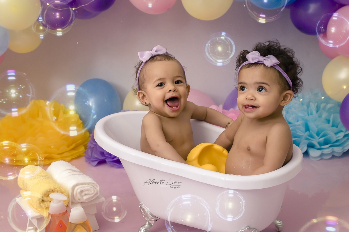 Júlia e Laura vieram como um presente do papai do céu aos queridos amigos Tati e Gui. Gêmeas, mas cada uma com sua personalidade e característica apaixonante, encanta a todos!